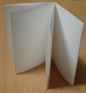 小さめの紙で結構ですので、複数枚紙を重ねた状態で2つ折りにし、本のような状態を作ります。